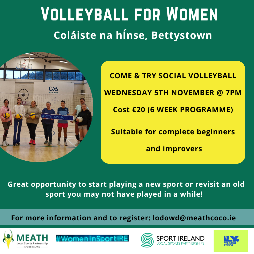 New Volleyball for Women programme starting on Wednesday 5th November in Colasite na hInse secondary school, Bettystown.